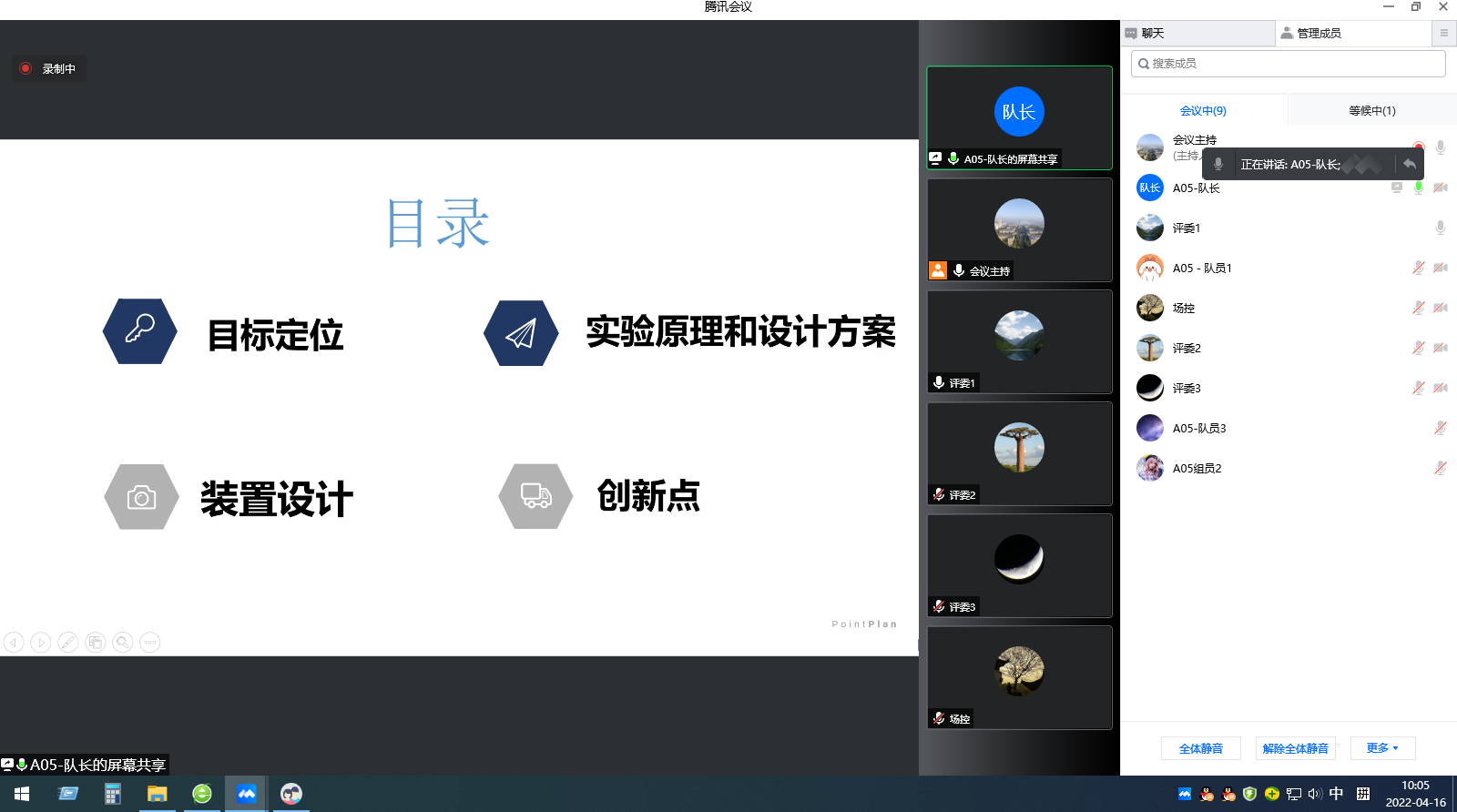 2022年4月16日上午“湖北省第七届大学生物理实验创新设计竞赛长江大学选拔赛”通过腾讯会议形式,进行了线上决赛。同学们经过精心的准备,展现了自己的风采,同时评委专家也给同学们提出了宝贵的意见和建议。